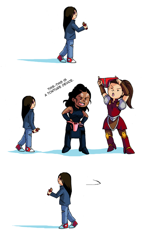 [This broadcast comes to you LIVE from outside a fancy lingerie shop, where Val and Sif are standing, both looking perplexed and a little...grumpy?